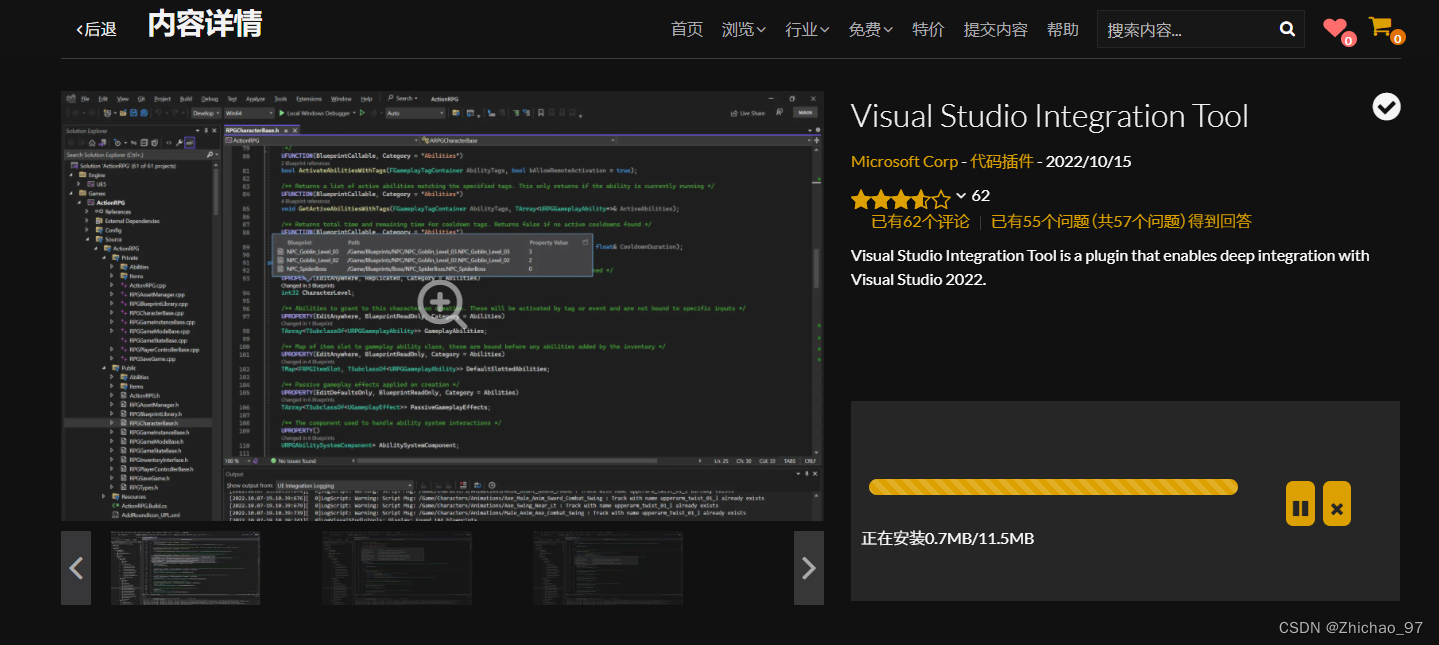 在虚幻商城中搜索“Visual Studio Integration Tool”插件并安装到引擎