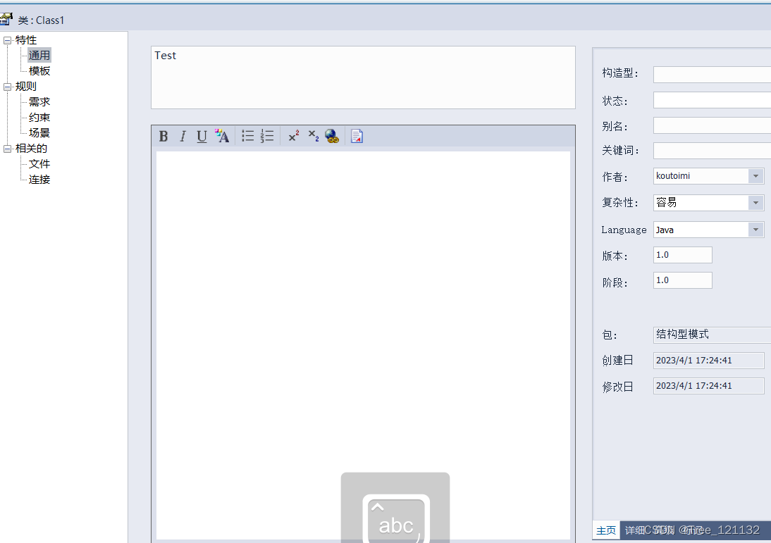 在类上鼠标右键添加其他信息,常用的是功能与属性的属性和操作,