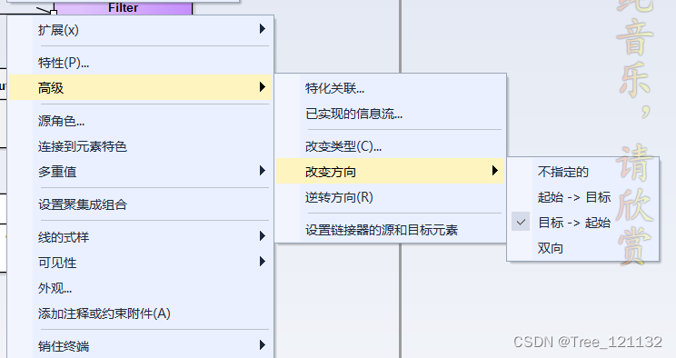 然后在连接线上,右键选择高级–>改变方向,目标到起始