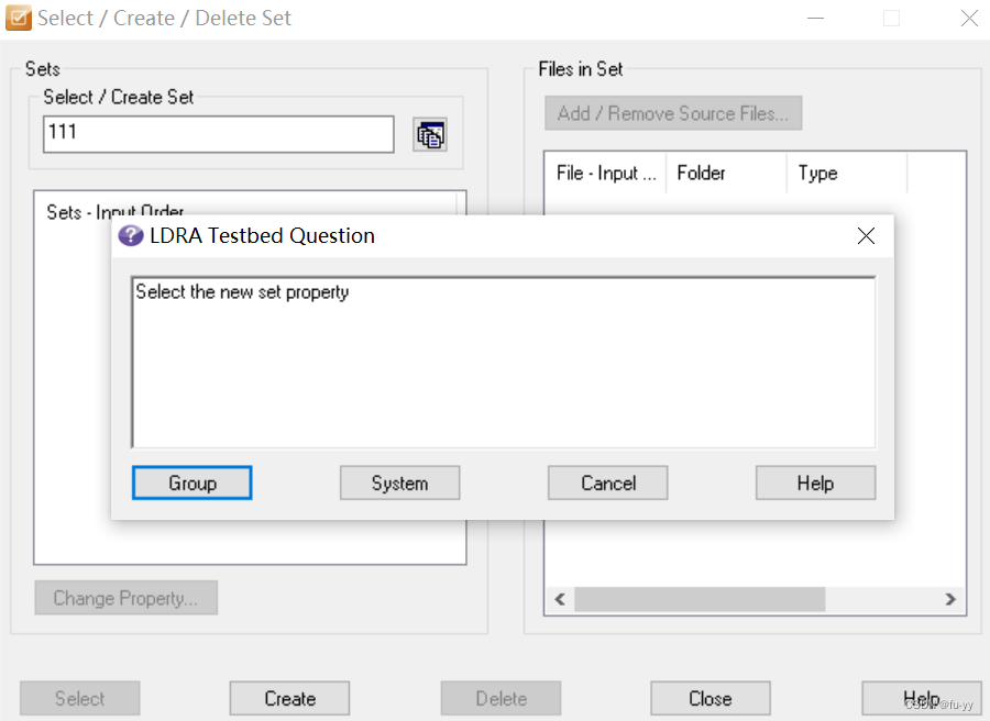 输入set名点击create后会弹出set的属性设置对话框,有两种属性:group和system