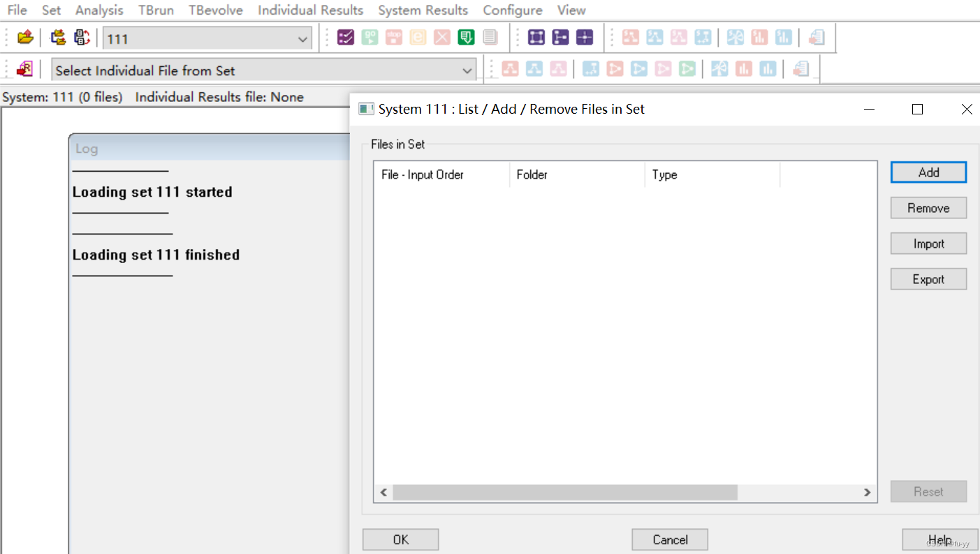 接下来向集合中添加文件,点击testbed菜单set-list/add/remove files in sets,在弹出的对话框中点击add添加多个文件到set中