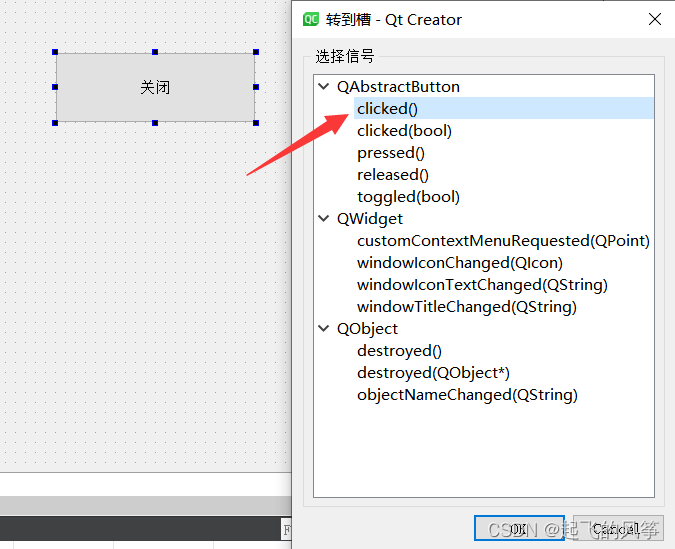 如:“on_pushButton_clicked()”,pushButton代表的是对象名,clicked是对应的信号。