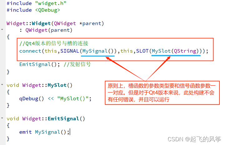 - 使⽤"emit"关键字发送信号。"emit"是⼀个空的宏。"emit"其实是可选的,没有什么含义,只是为了提醒开发⼈员。
