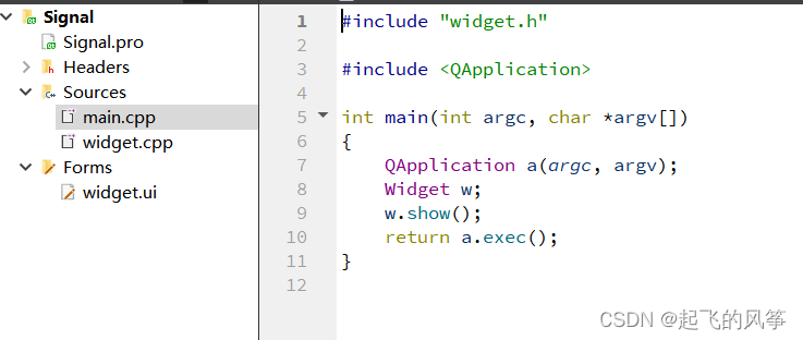 (2)在"Widget.cpp"⽂件实现重载槽函数以及连接信号和槽。