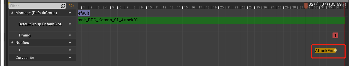 这时候使用攻击函数播放攻击动画,只能播放一次,当播放完之后就无法再播放第二次,而如果在Attack() 中 PlayAnimMontage(AttackMontage, 1.f) 下添加IsAttack = false; 就会立即重置,无法达到想要的效果,而导致攻击鬼畜