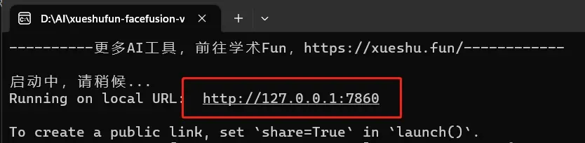 启动会非常快,启动之后会出现一个网址http://127.0.0.1:7860