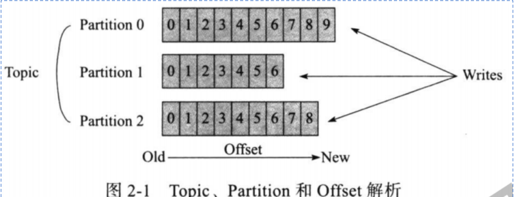 消息在 Topic 的 Partion 中的位置,同一个 Partion 中的消息随着消息的写入,其对应的 Offset 也自增,结构图如下:
