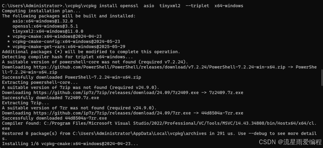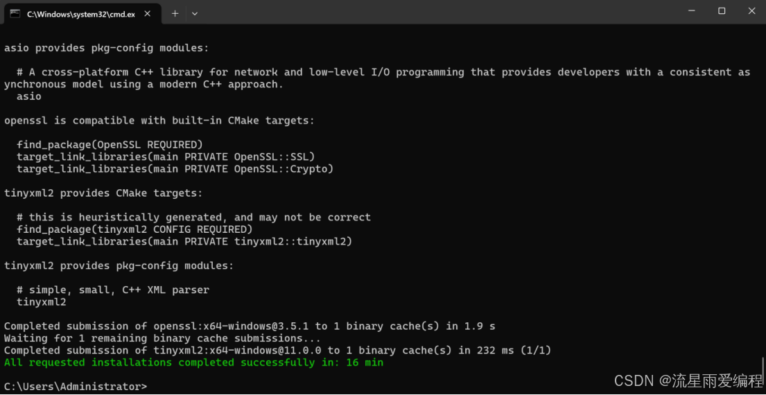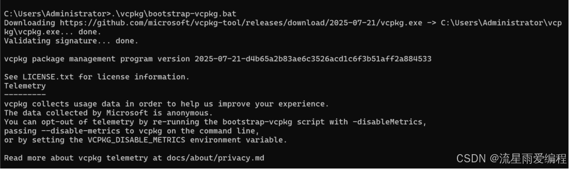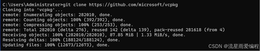 由于我的电脑通过cmd命令命令行目录是C:\Users\Administrator,所以vcpkg是安装在C:\Users\Administrator这里: