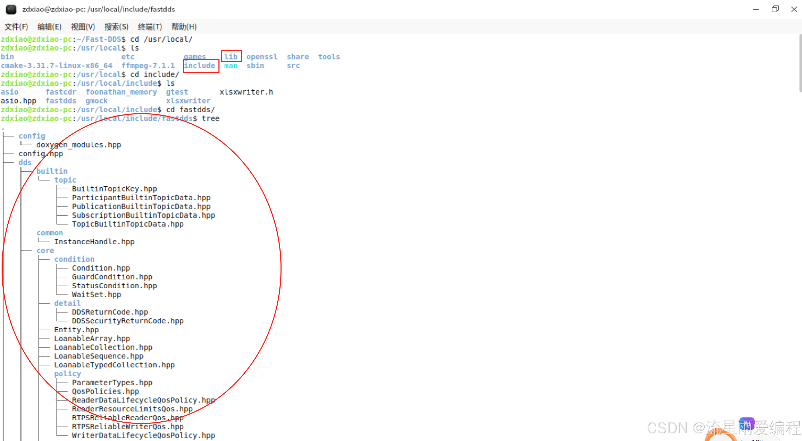 然后再用同样的方法安装FastDDS即可。安装完在/usr/local目录下有FastDDS的相关信息: