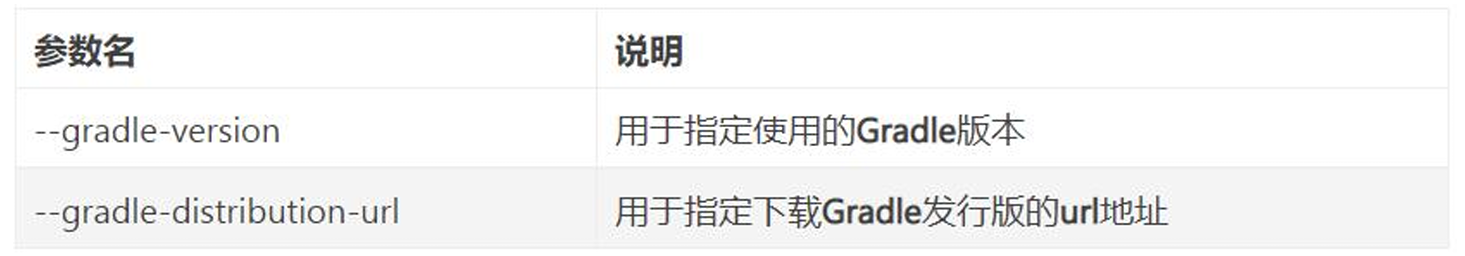gradlew指令时,指定指定一些参数,来控制Wrapper的生成,比如依赖的版本等,如下: