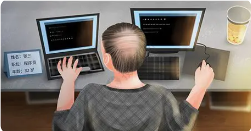 研究证实:编程工作本身并非脱发直接诱因,而是该职业特有的高压环境(皮质醇异常分泌)、昼夜节律紊乱(生物钟基因失衡)、营养失衡(微量元素缺乏)及久坐行为(头皮血液循环受阻),共同构成毛发健康的 “威胁链”。