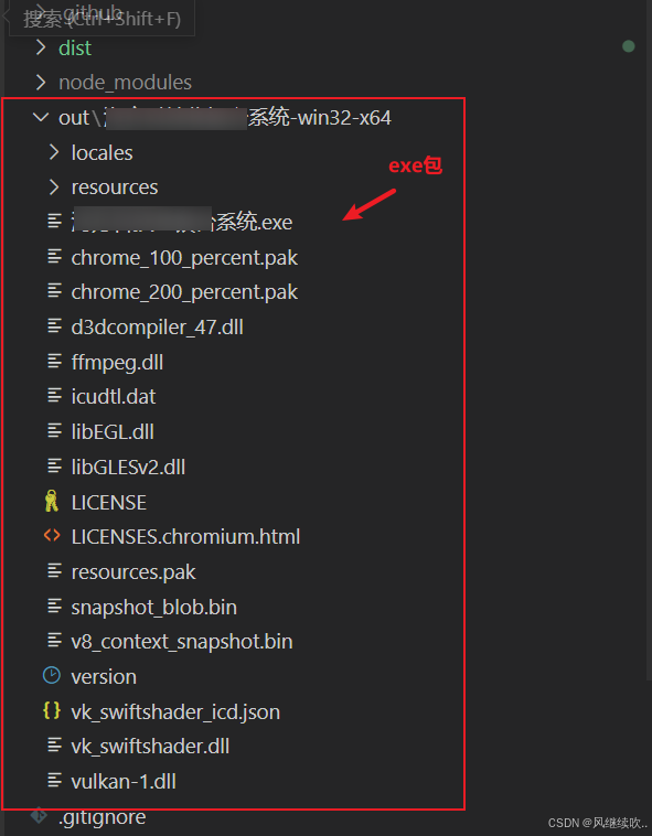 打包完毕, node_modules同级 会生成out文件, 点开exe包就是打包好 , 可安装在windows系统上