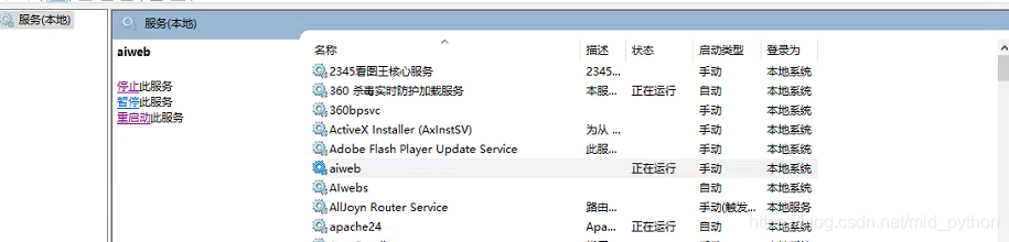 最后大功告成,此方法可以将flask服务、爬虫服务都可以注册成windows服务,开机自启动。