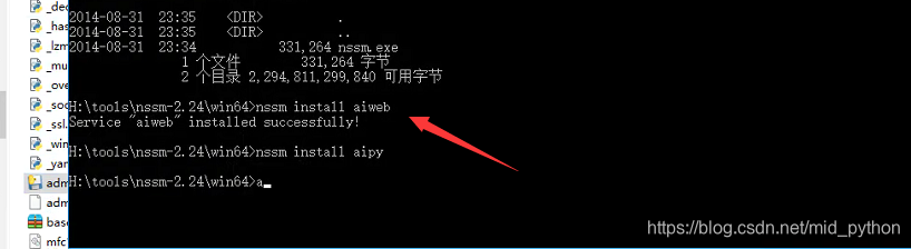 1 | 1.在cmd中进入nssm中的目录,然后进行命令 |