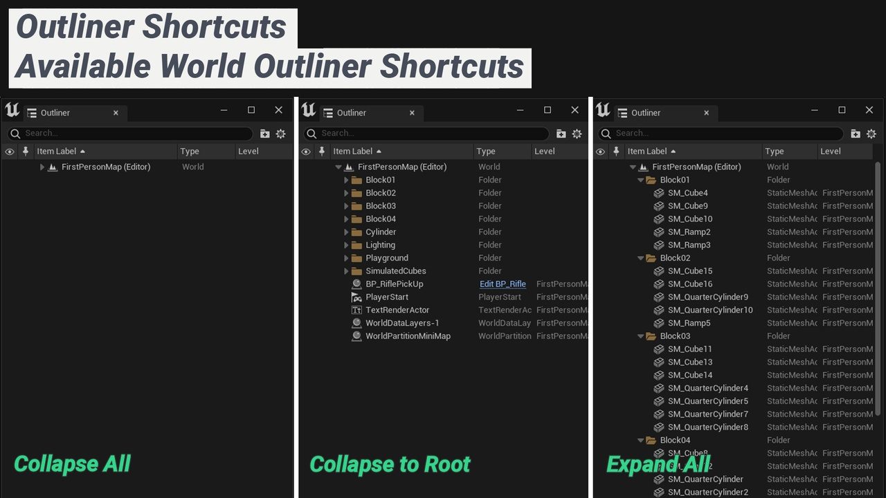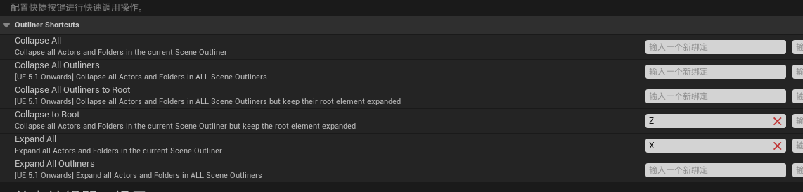 大纲视图快捷方式是仅编辑器插件这允许将快捷方式绑定到一些基本的世界大纲视图功能,如全部折叠和全部展开,并且还添加了一个新的功能折叠到根。