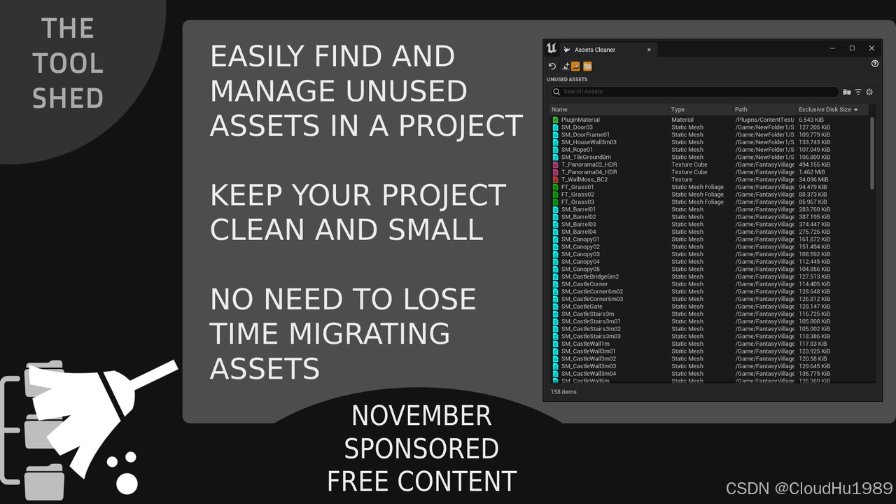 一句话推荐:资源清理器能快速列出项目中未使用的资产,并允许直接从工具中进行管理。通过轻松查找和移除闲置资源,帮助保持项目整洁高效。
