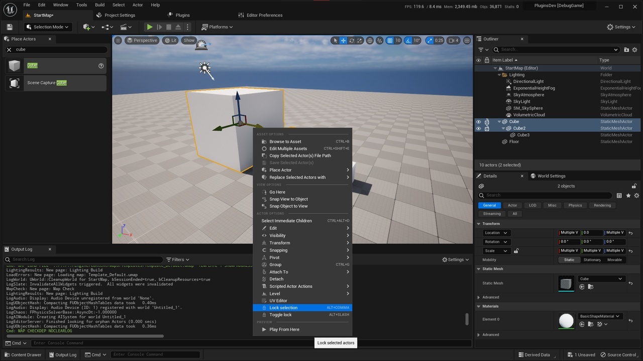 简单的编辑器扩展。它允许你通过世界轮廓窗口/热键/上下文菜单在编辑器视图中锁定演员,所以锁定的演员不能被选中或移动,直到你解锁他们。