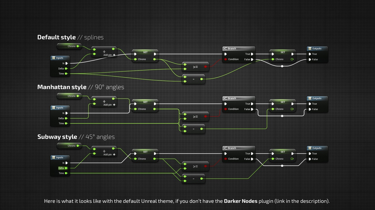 虚幻引擎图节点的极简风格。这个插件增加了一个简化的视觉外观,更扁平,我认为这使得图形更清晰,可读性更好。