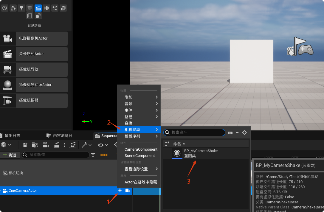 1. 新建一个蓝图,父类选择“CameraShakeBase”