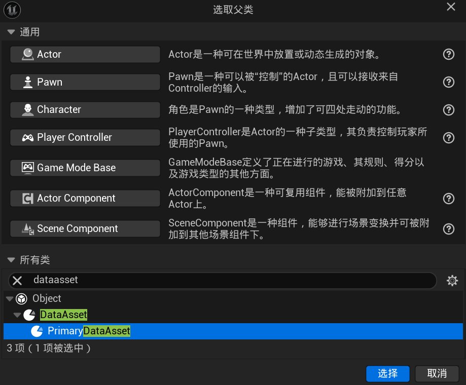 2.选择父类PrimaryDataAsset