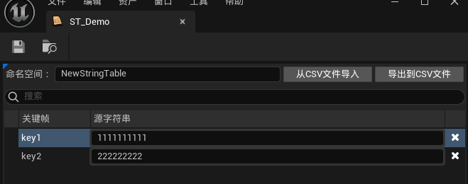 字符串表格使用简单,只有Key和Value两列,并且可以用CSV导入。具体使用: