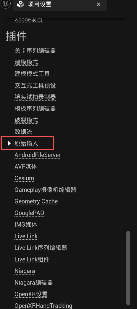 启用该插件后,Raw Input (原始输入)部分将出现在 项目设置(Project Settings) 菜单中。
