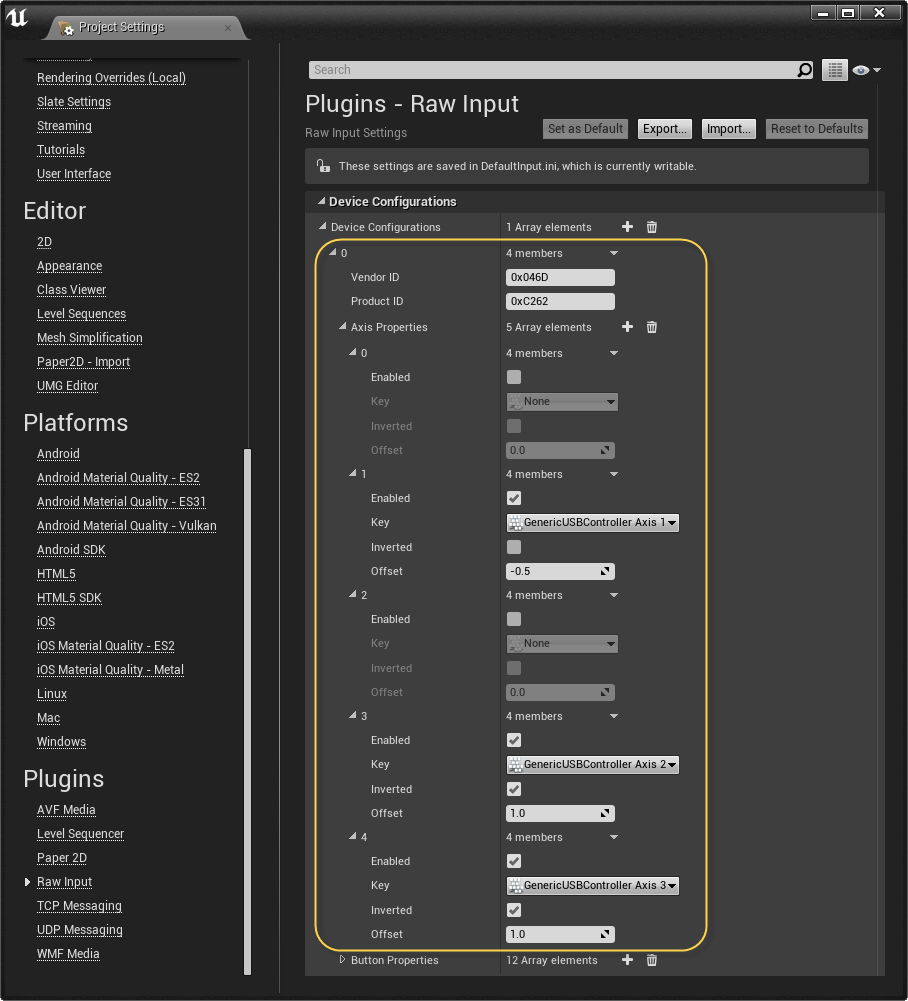 这些输入设备的按钮和轴可以自定义映射到游戏输入,包括插件本身创建的新输入。