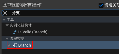 (1)在“事件图表”面板的空白处单击鼠标右键并输入“分支”,生成一个“分支”节点