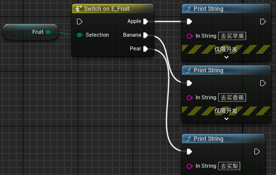 (3)下面是 Switch on Enum 节点的使用样例,它使用枚举的值作为可用的输出节点。
